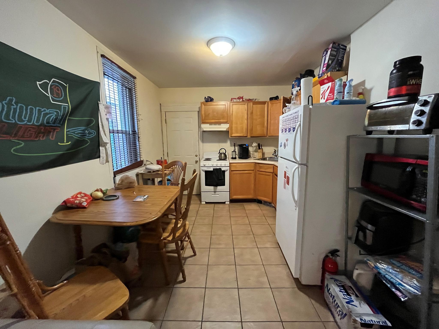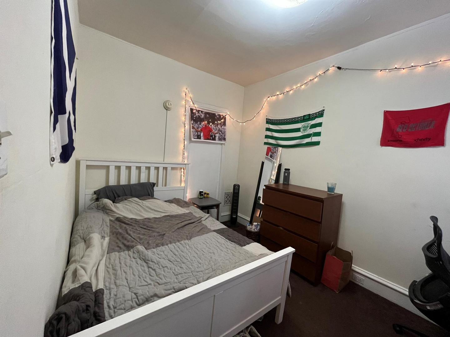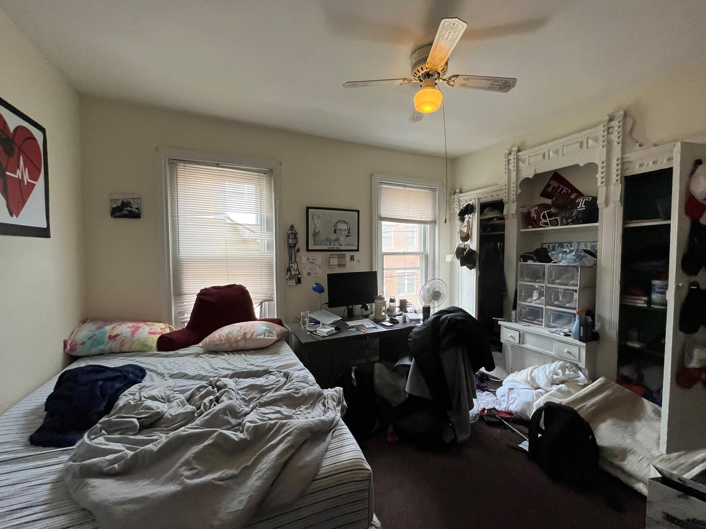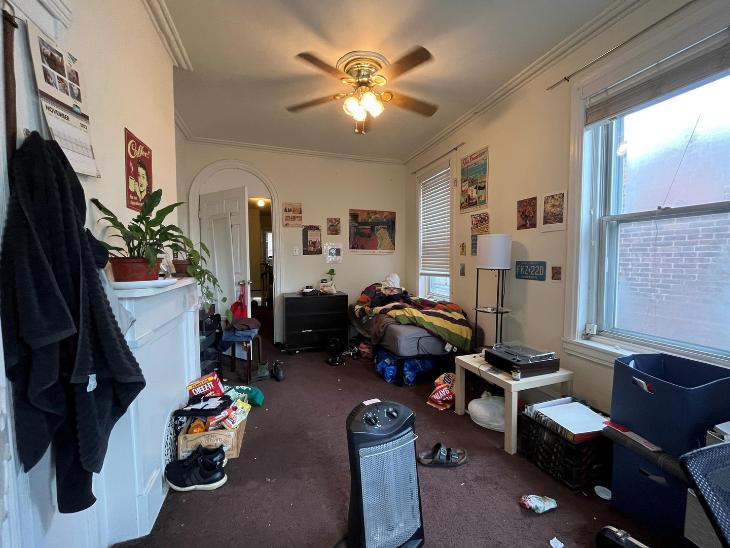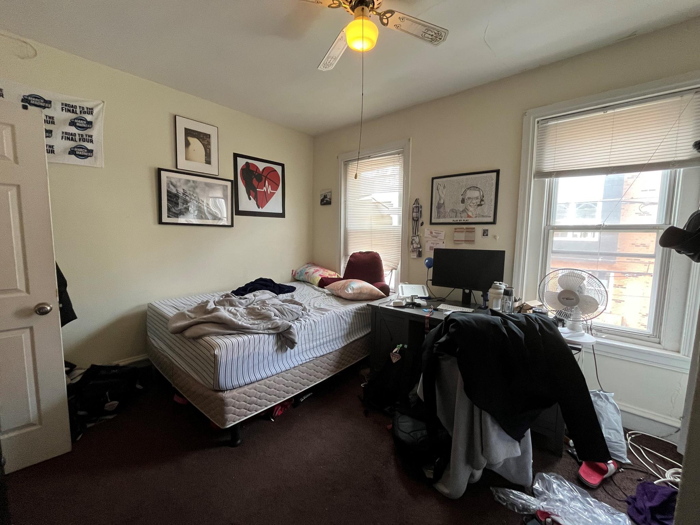 The house has a spacious living room, a lot of natural light, a semi-finished basement, a well-sized backyard, 2 full baths, window units, and forced-air heating. Rooms can easily fit a full-size bed, a desk, a dresser and they have spacious closets. Utilities on average are around $60-70/mo per person. First last and security is required to move in. Private, caring owner! Video tour available.