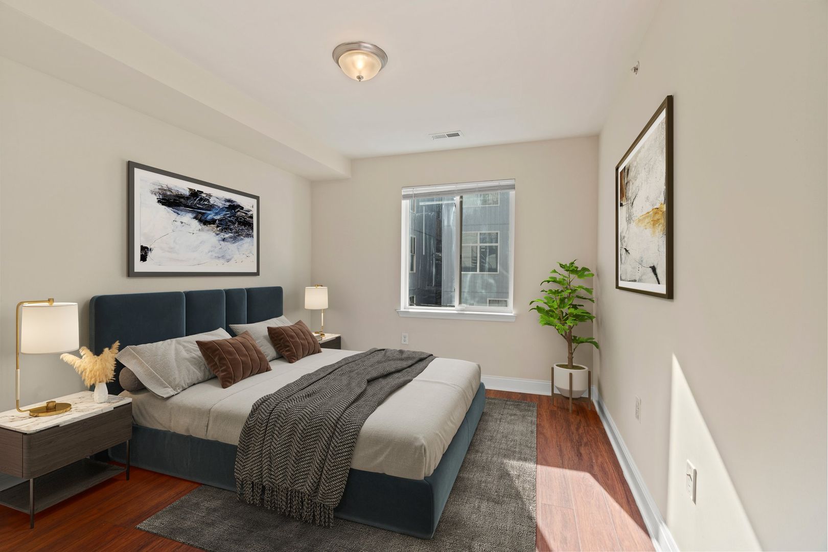The construction is less than 10 years old so it has all the modern things like a beautiful kitchen, spacious rooms, beautiful floors throughout, new paint, nice living space, and lots of natural light. The unit also has a monitor from cameras around the building so you always know what happens around the building. Great property management and a caring landlord.