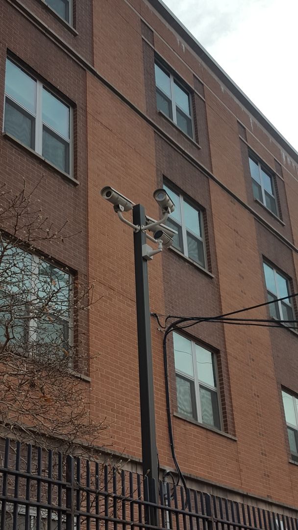 - Very noticeable security cameras from White Hall look onto the street.