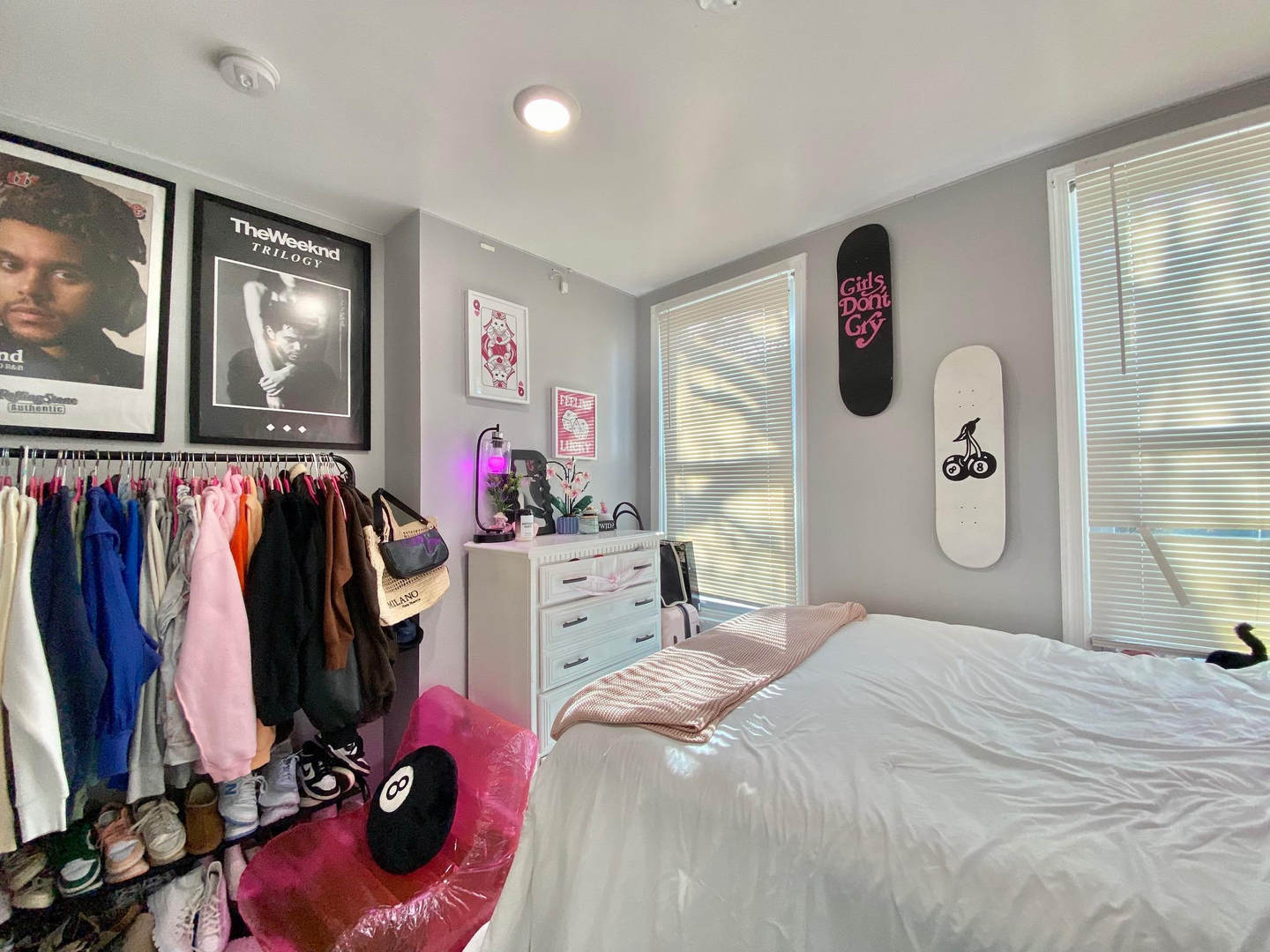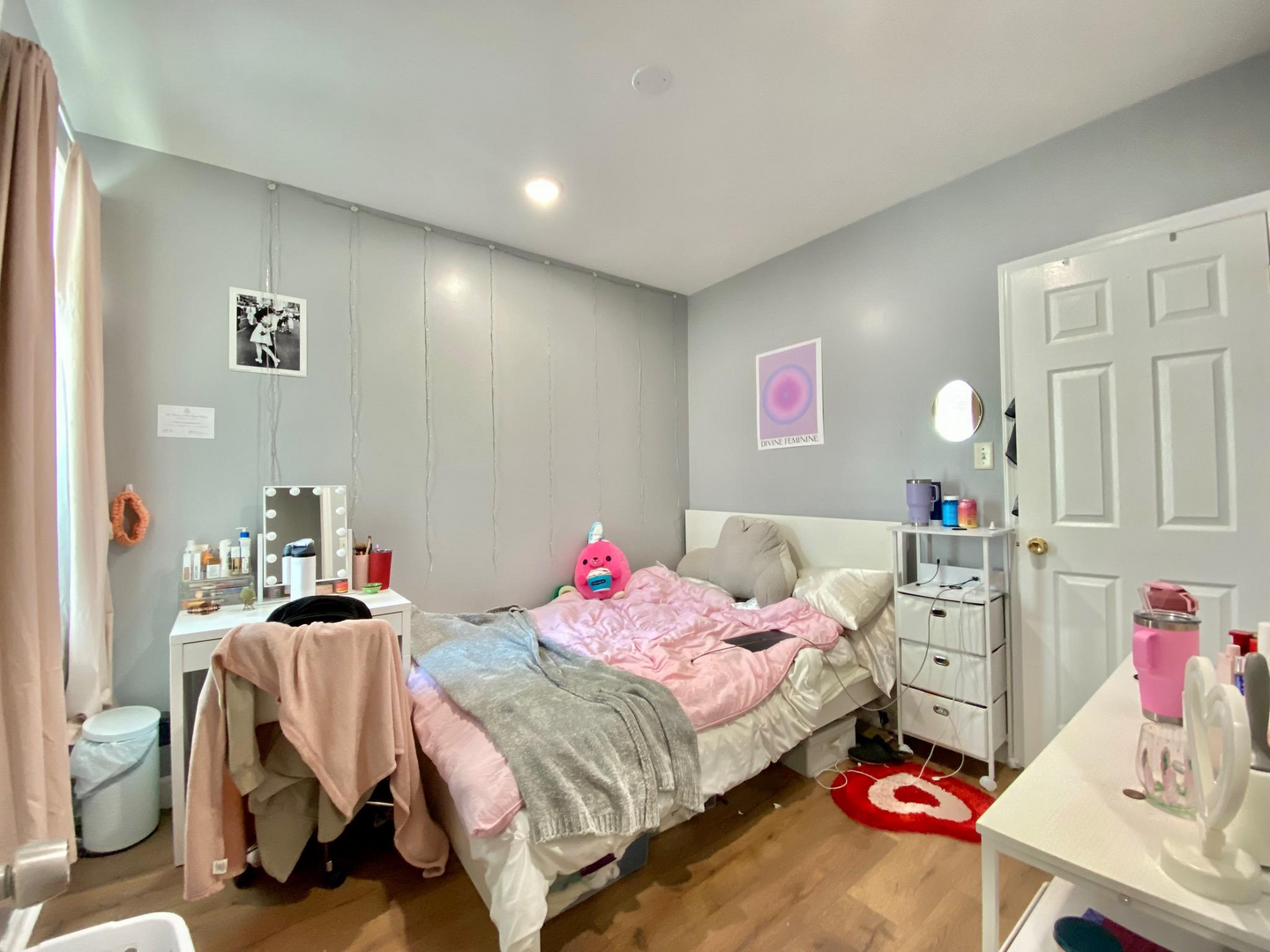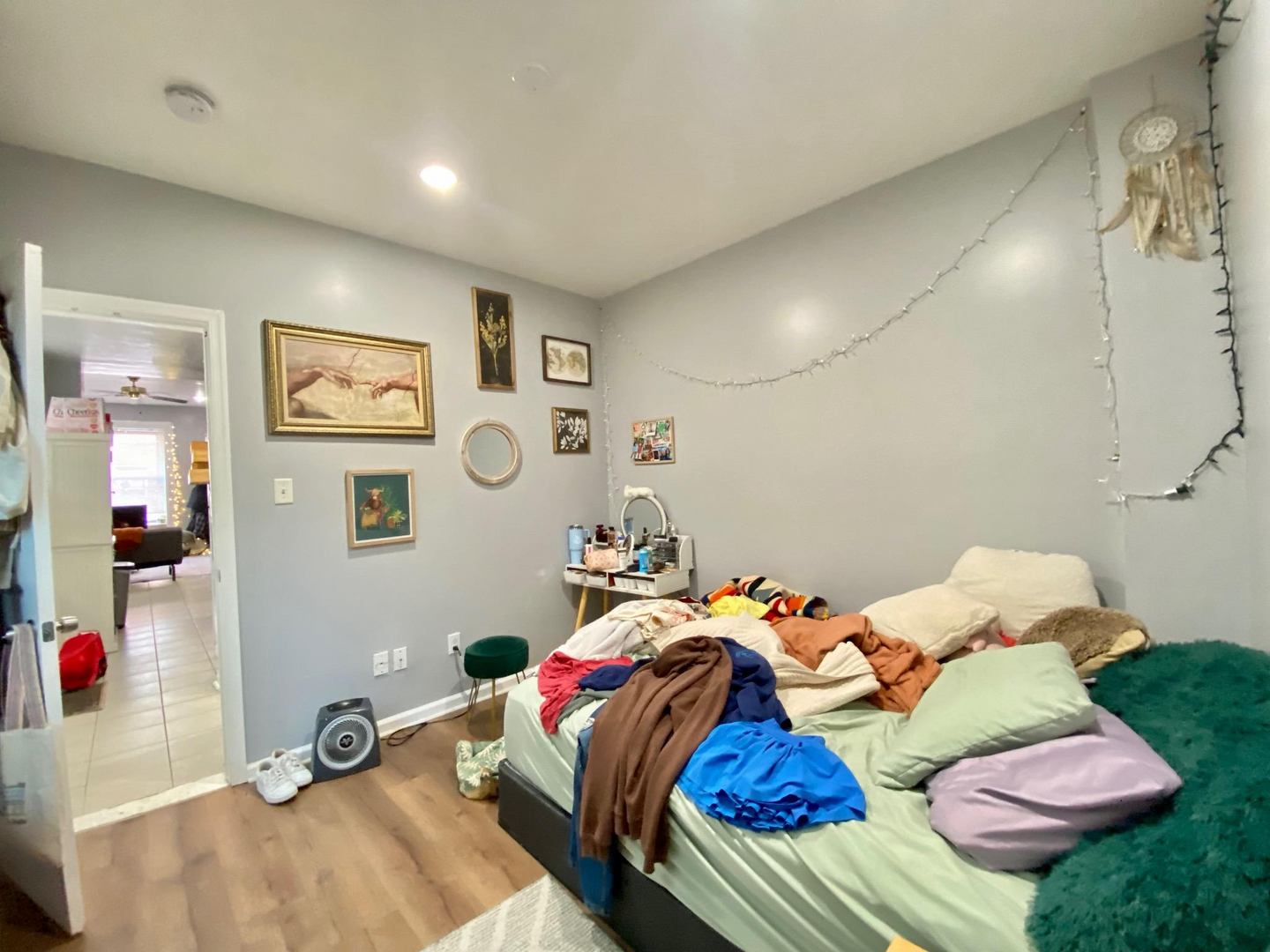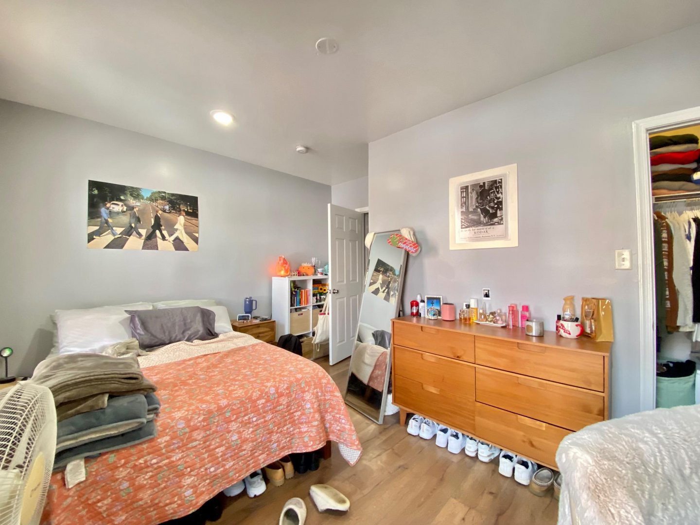 The house has a spacious living room, a lot of natural light, a semi-finished basement, a well-sized backyard, 2 full baths, window units, and forced-air heating. Rooms can easily fit a full-size bed, a desk, a dresser and they have spacious closets. Utilities on average are around $50-60/mo per person. First last and security is required to move in. Private, caring owner! Video tour available.